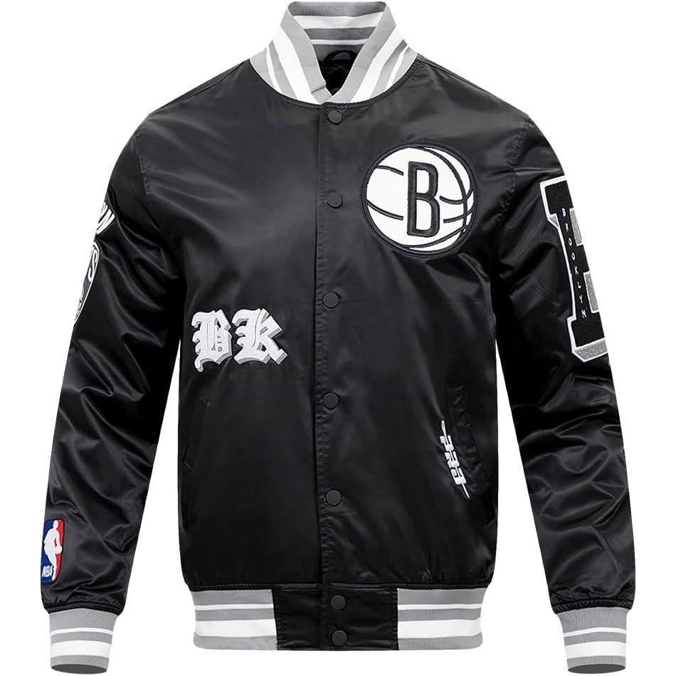 Pro Standard Mens NBA Old English Satin Jacket(Black/Gray)