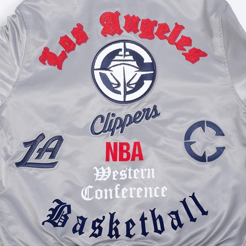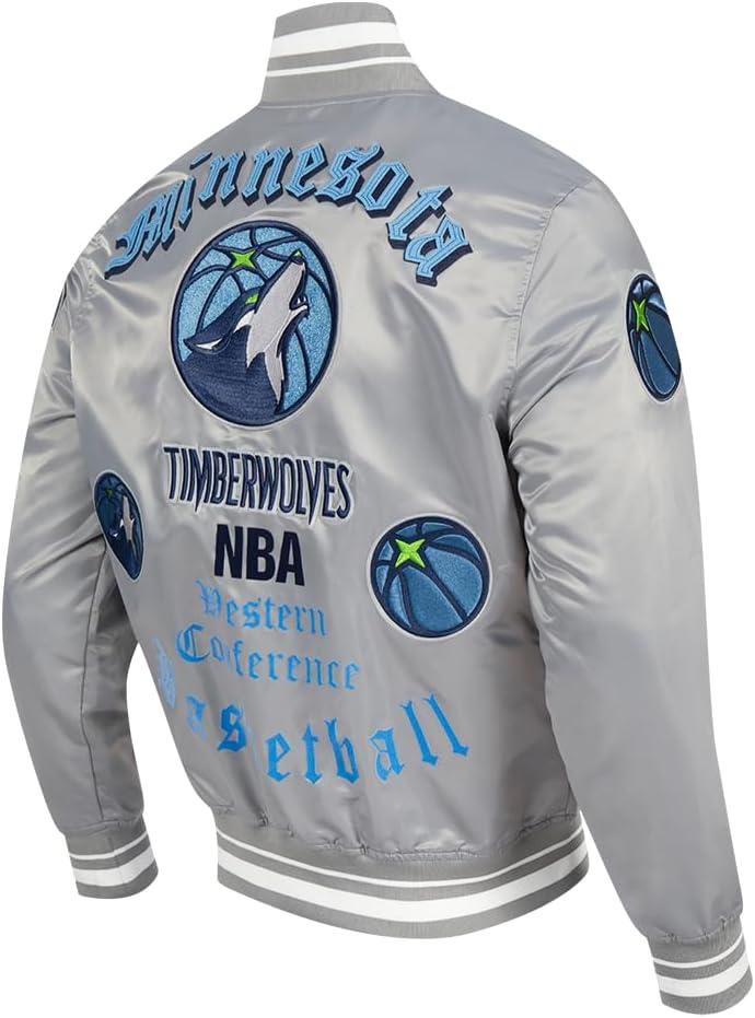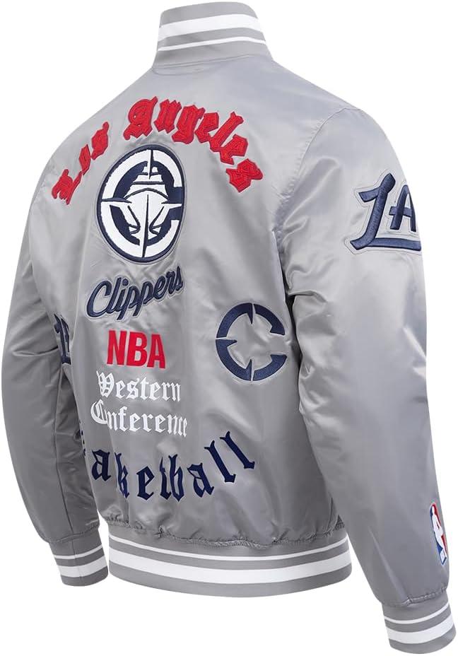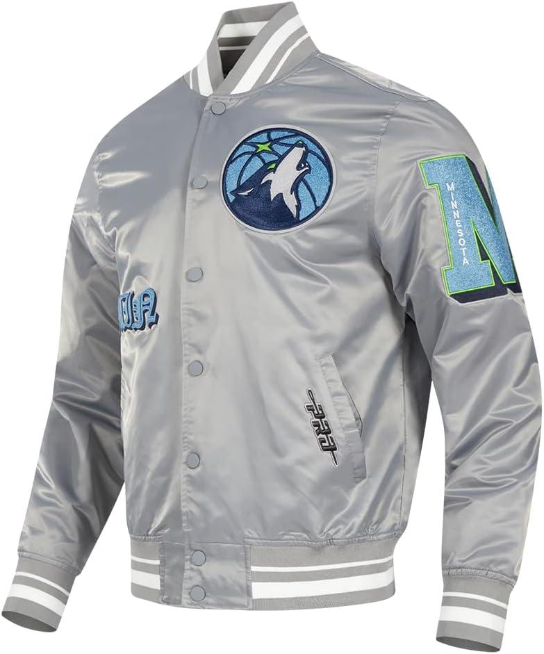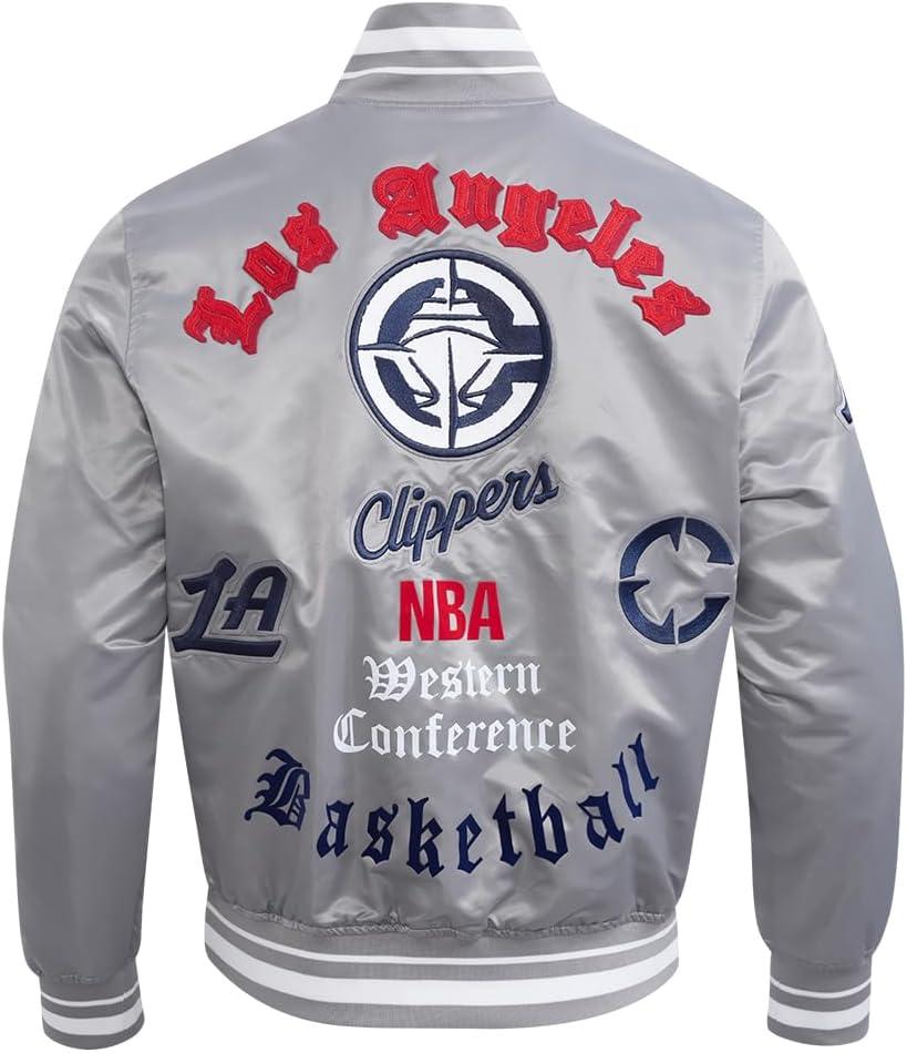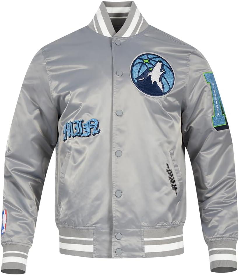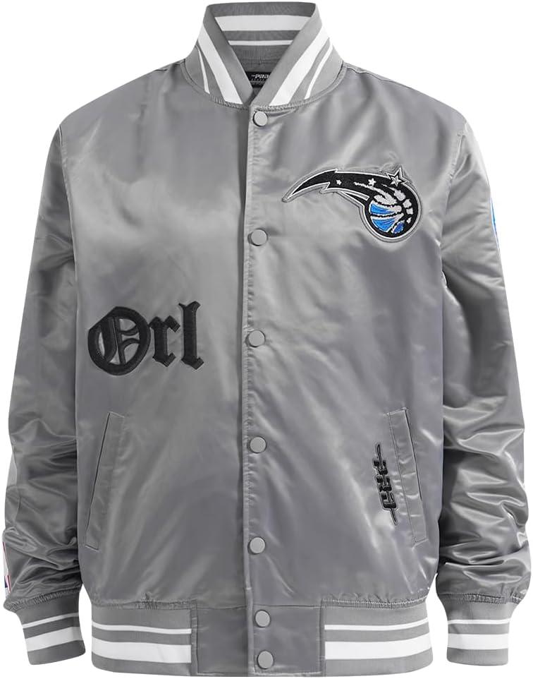 Pro Standard Mens NBA Old English Satin Jacket(Gray)