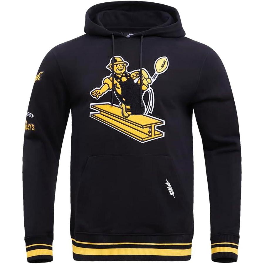 Pro Standard Mens NFL Retro Classics Brushed Back French Terry Pull Over Hoodie(Black/Yellow)