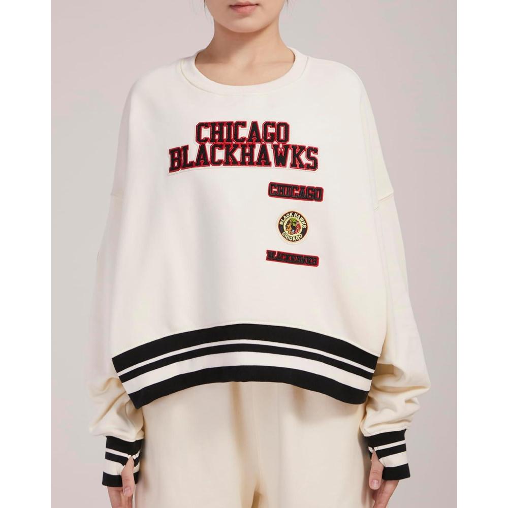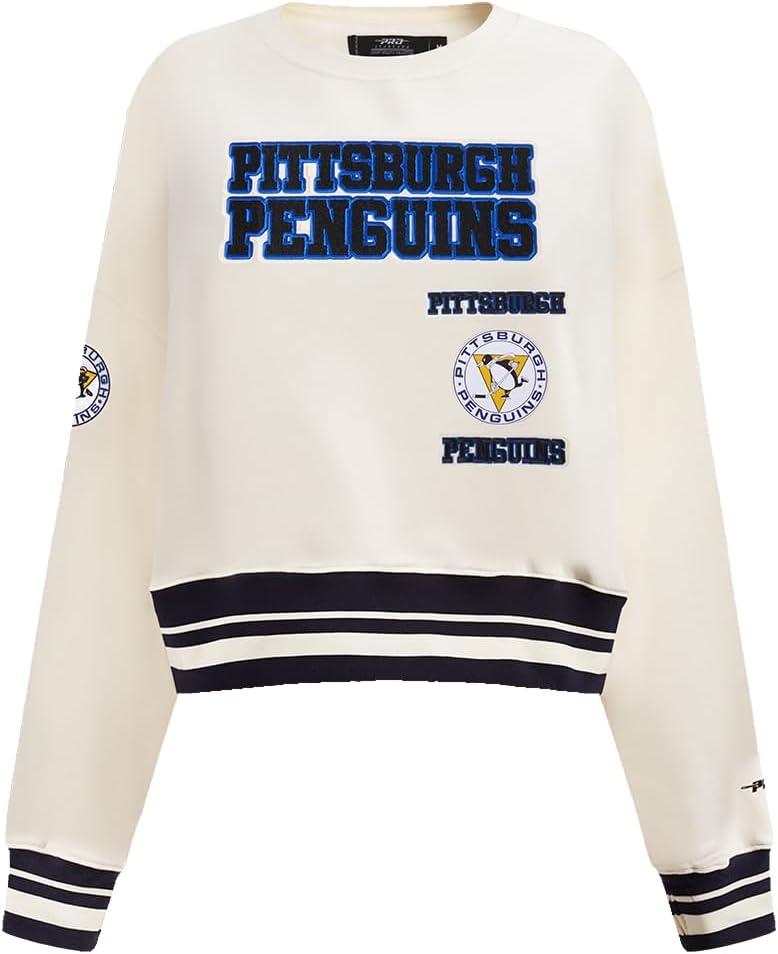 Pro Standard NHL womens Womens Nhl Retro Classics Brushed Back French Terry Crewneck Sweatshirt(Eggshell/ Black)