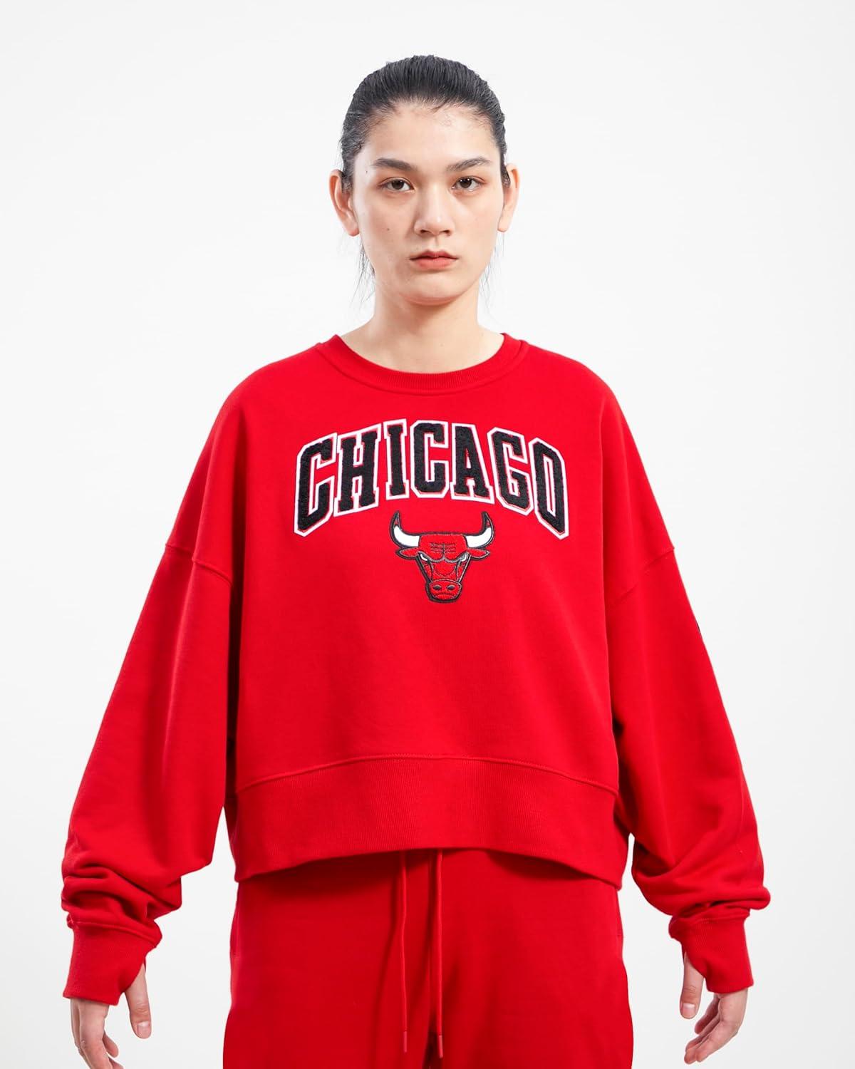 Pro Standard Womens NBA Classic Chenille Crewneck Sweatshirt(Red)
