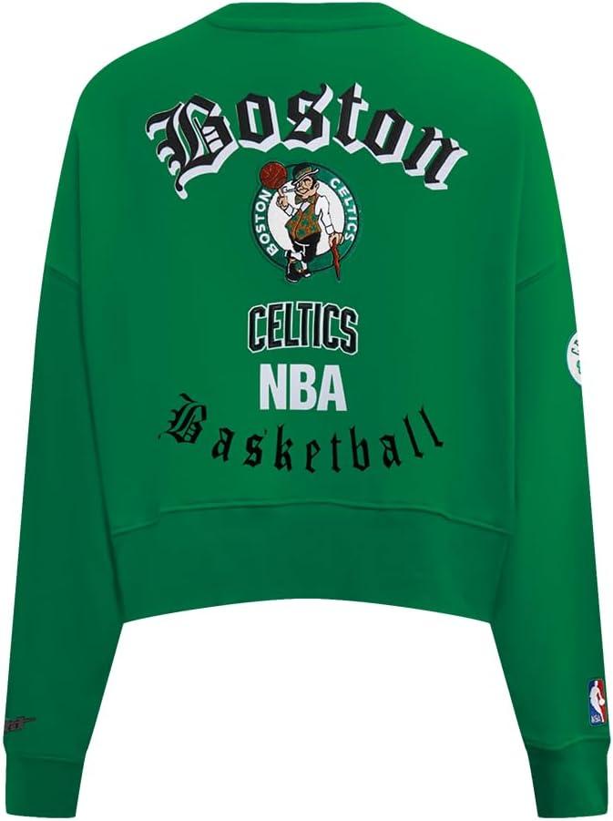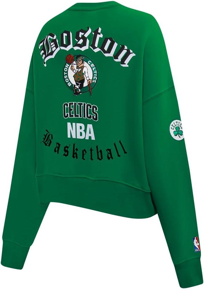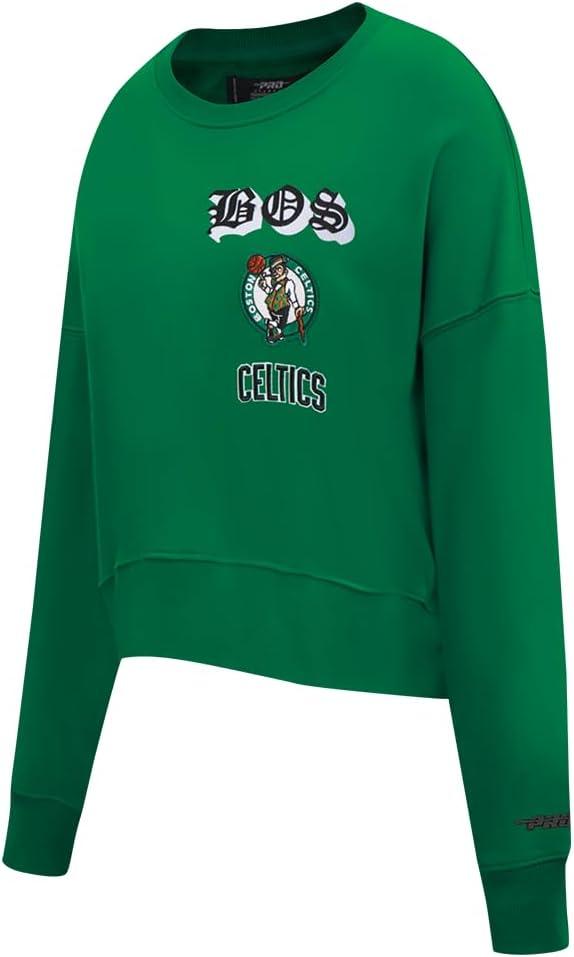Pro Standard Womens NBA Old English Brushed Back French Terry Crewneck Sweatshirt(Kelly Green)