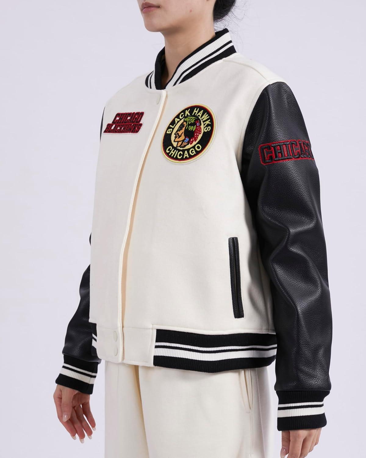 Pro Standard Womens NHL Retro Classics Varsity Jacket(Eggshell/ Black)