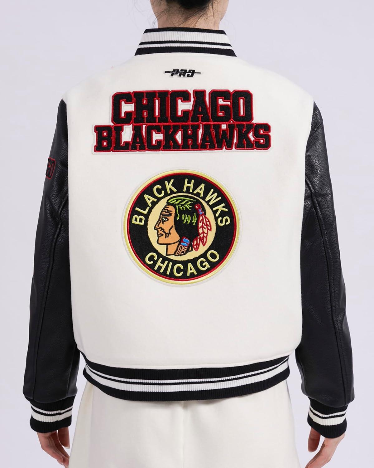 Celebrate the nostalgia of sports with our Women's NHL Retro Classics Wool Pu Varsity Jacket. Featuring chenille applique and satin stitch embroidery on a felt backing